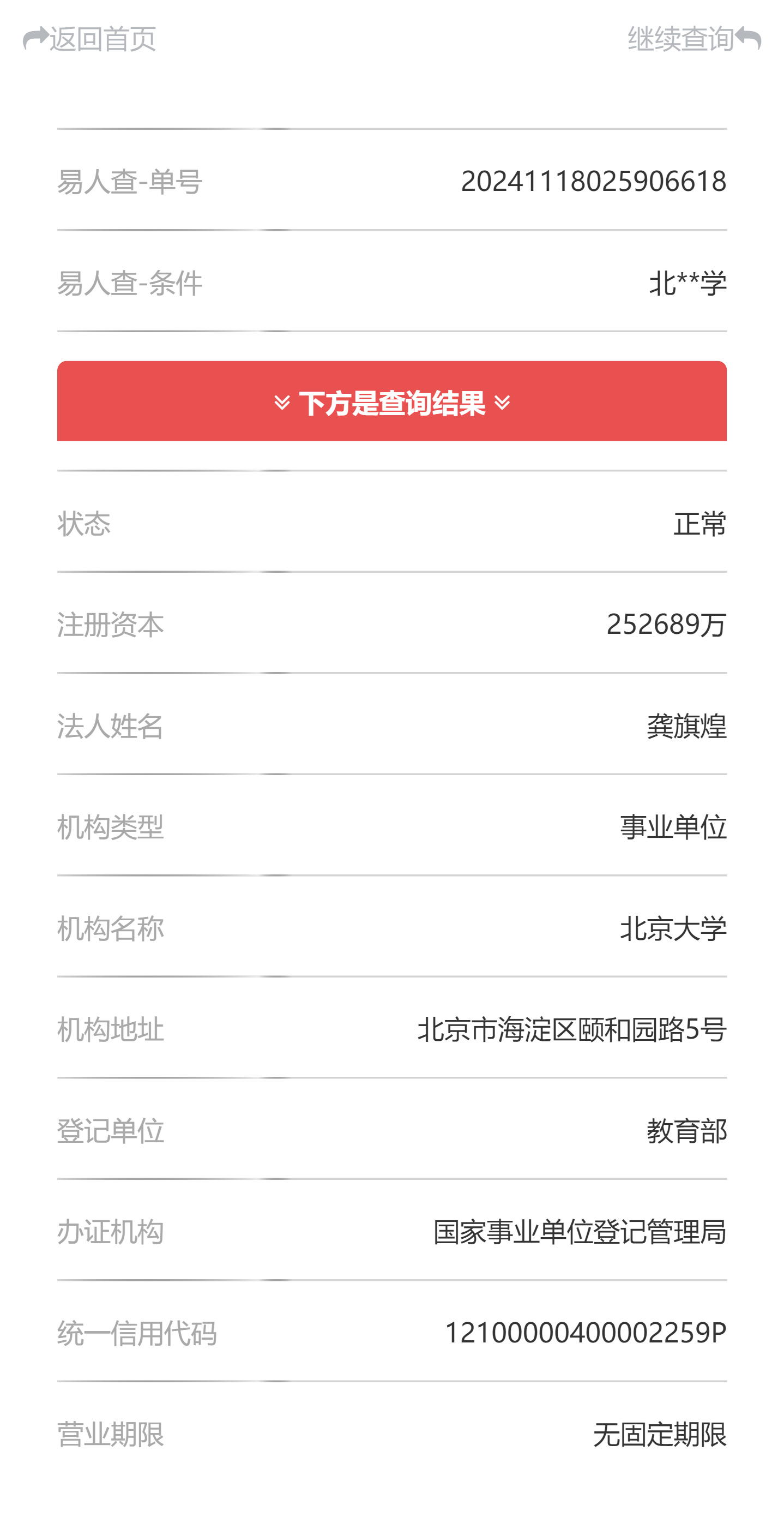 输入公司名全称查询国家企业信用信息公示系统中无法搜索到的特殊企业基本信息,主要包含了香港公司、社会组织、律所、事业单位、基金会等。主要信息包括:法人代表、机构类型、成立日期、社会统一信用代码、注册日期、注册资本、经营范围、企业状态等。